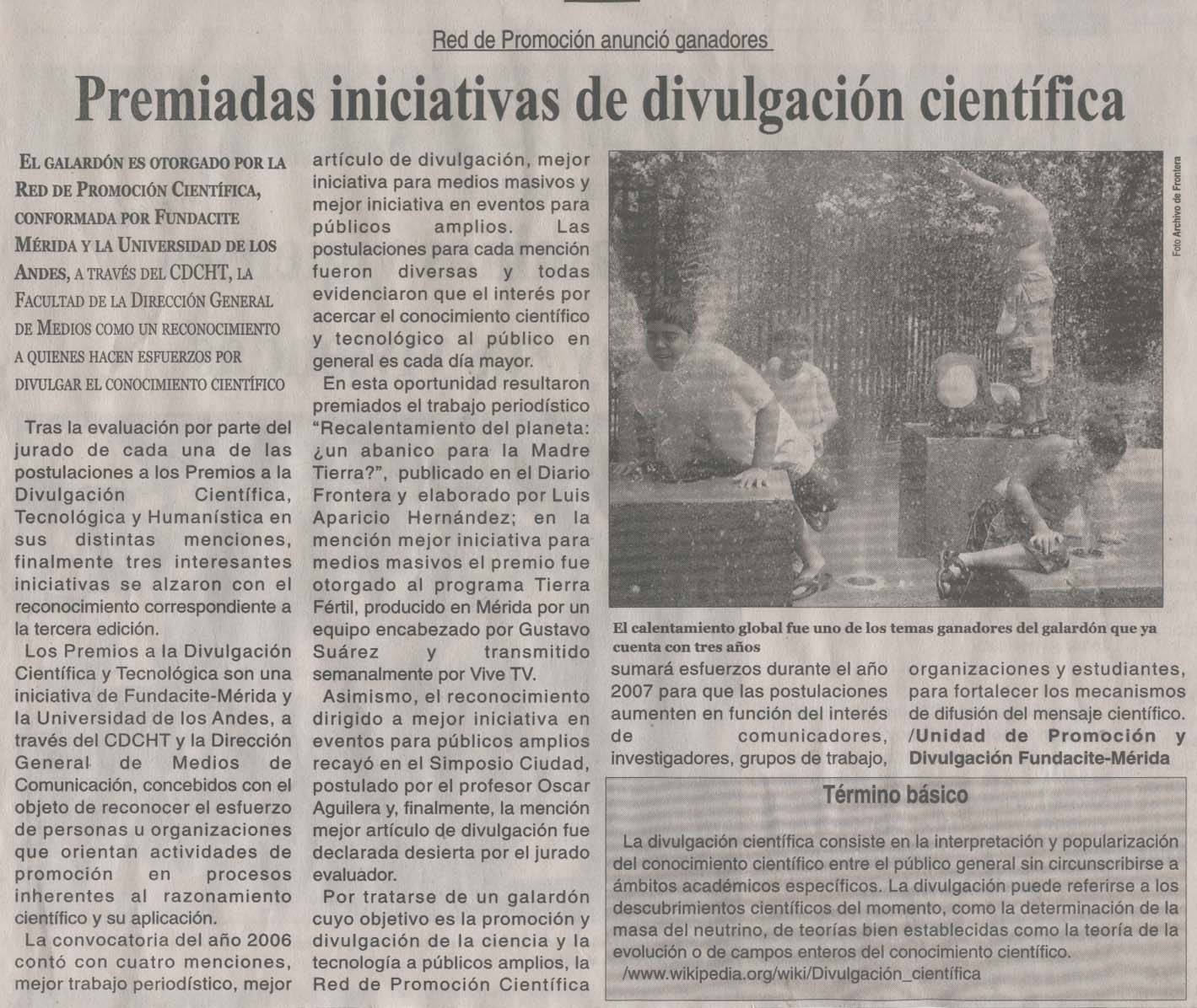 http://repositoriodigital.fundacite-merida.gob.ve/handle/123456789/8056| Título : | Premiadas iniciativas de divulgación científica |